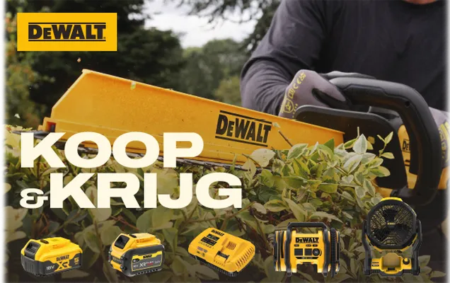 Claim je gratis Cadeau bij je DeWALT tuinmachine